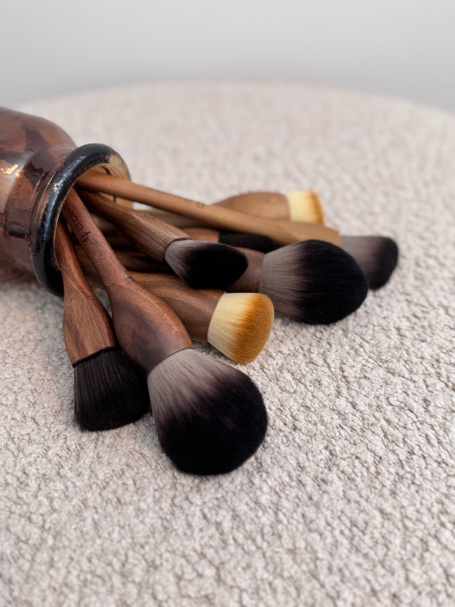 Nachhaltig & präzise. Der handgefertigte Walnussholz-Griff liegt perfekt in der Hand, die veganen Borsten sorgen für ein gleichmäßiges, makelloses Finish.