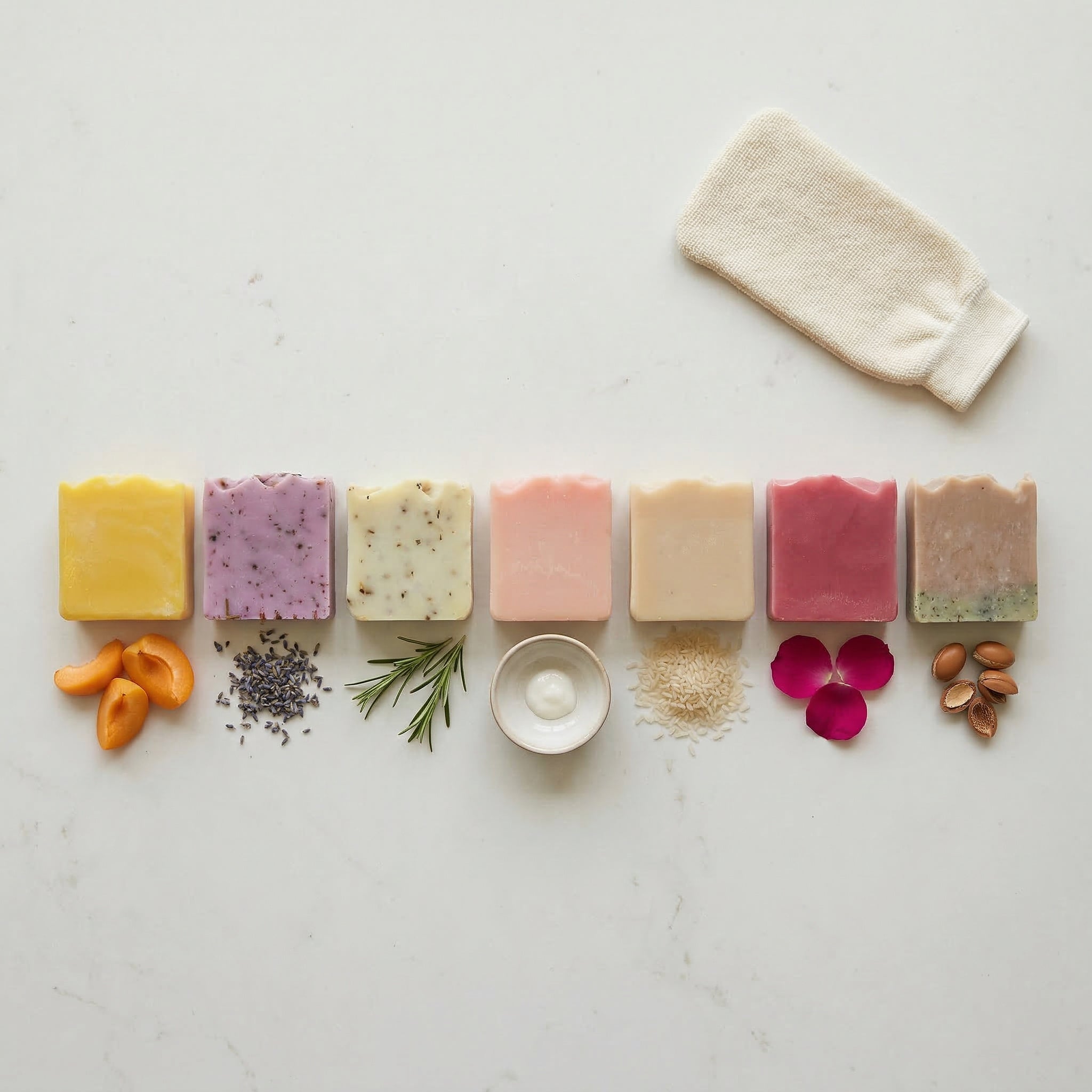 7er Naturseifen Bundle + Gratis Waschlappen